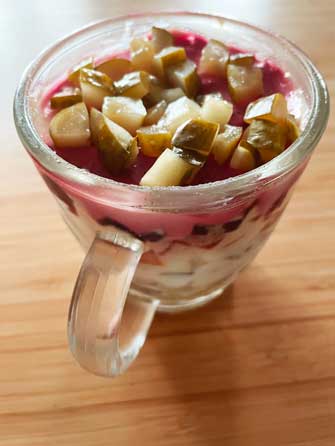 Необходими продукти: 400 гр. руска сельодка /маринована херинга/ 120 гр. картофи /2 броя/ 100 гр. моркови /2-3 броя/ 100 гр. червено цвекло /1 глава/ 1 глава червен лук 150 гр.…