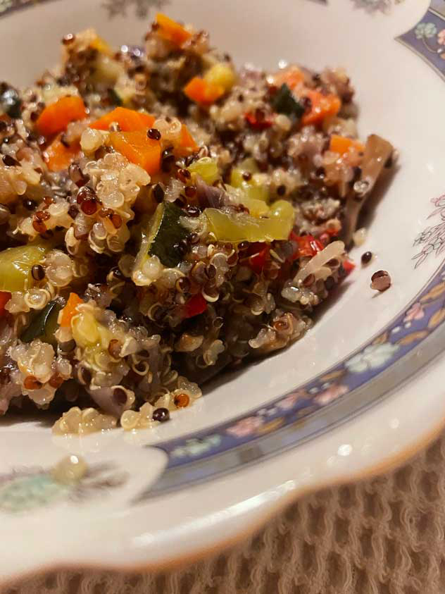 Необходими продукти: 200 гр. киноа 200 гр. гъби печурки 1 тиквичка 1 червена чушка 1-2 зелени чушки 2 моркова 1 глава лук олио сол Начин на приготвяне: Киноата се сварява…